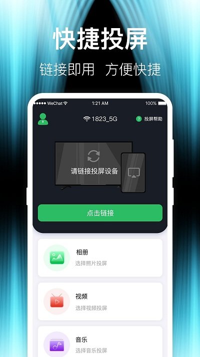 4、无线投屏,实现手机与智能电视设备的连接后就可进行便捷的投屏操作