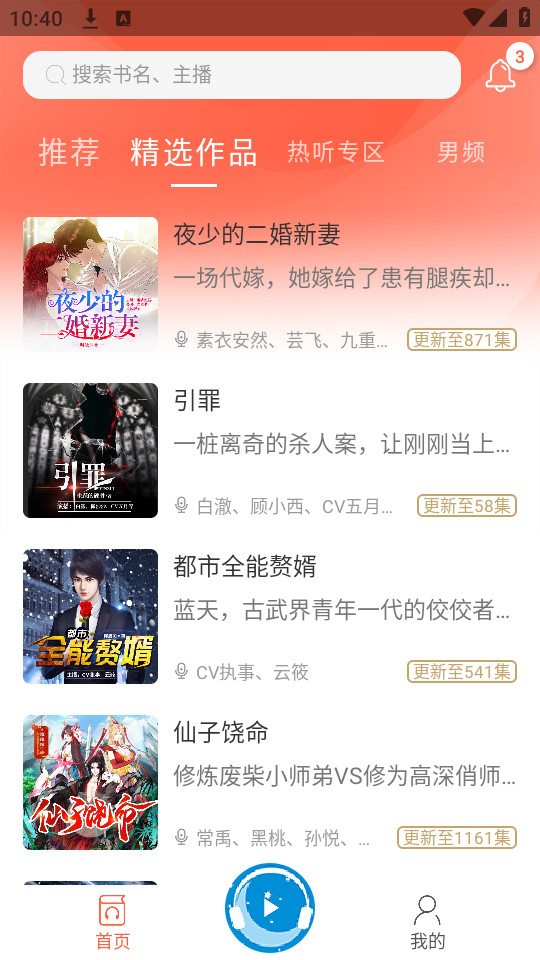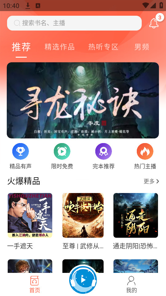 海量热门有声小说、玄幻、修仙、武侠、名着、言情、灵异、悬疑、一次听个够