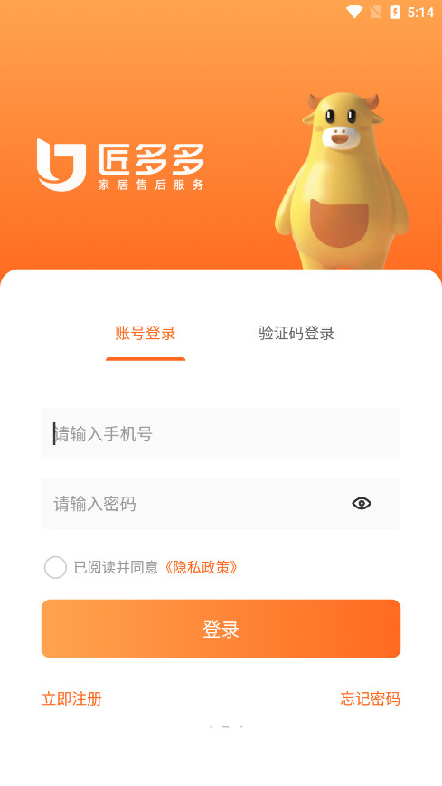 1、下载匠多多师傅版app后打开进入,来到登录界面。