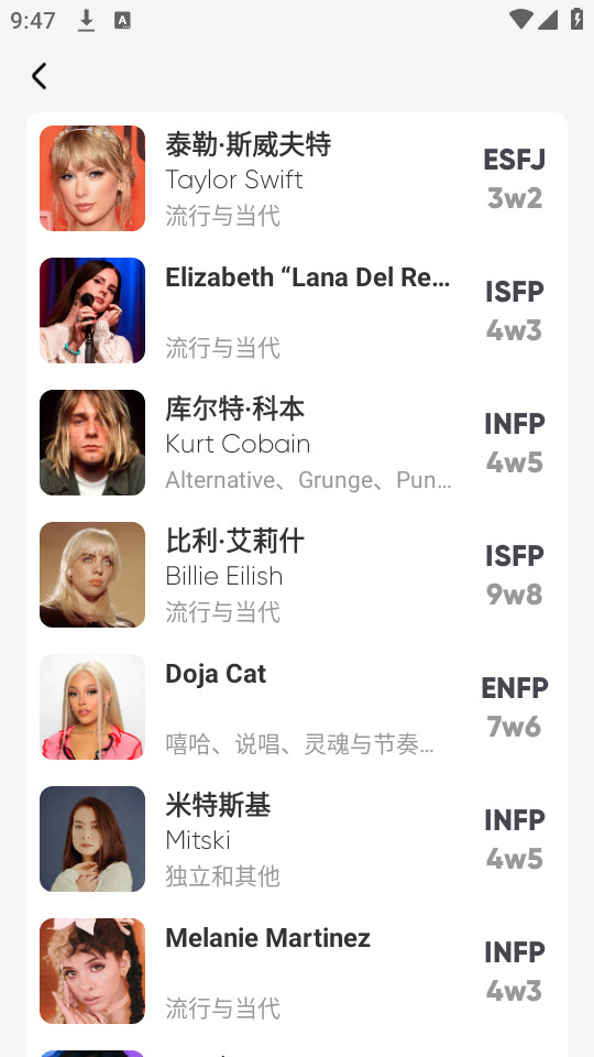 ① 现在你只需要在输入框里输入你感兴趣的名人,就可以看到他们的MBTI和具体的用户投票结果。