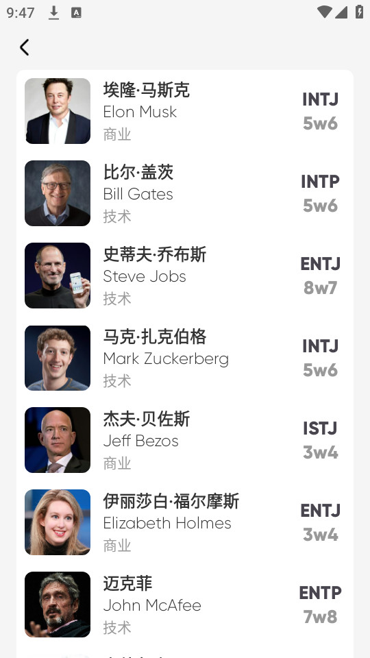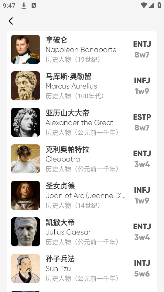 MBTI百科App主要功能是查询名人的MBTI,目前收录了15万+的名人MBTI数据,未来还会不断补充,目标是能查到所有名人的MBTI。