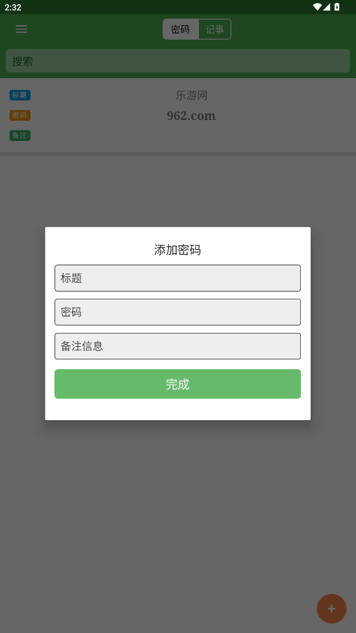 输入标题,密码,点击完成