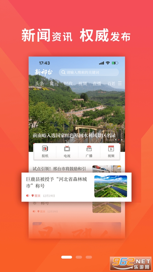 3、该客户端聚合邢台地区媒体内容、用户和服务资源,创新构建新媒体矩阵,全面布局新闻资讯、权威发布、政治监督、便民、智慧城市等服务!