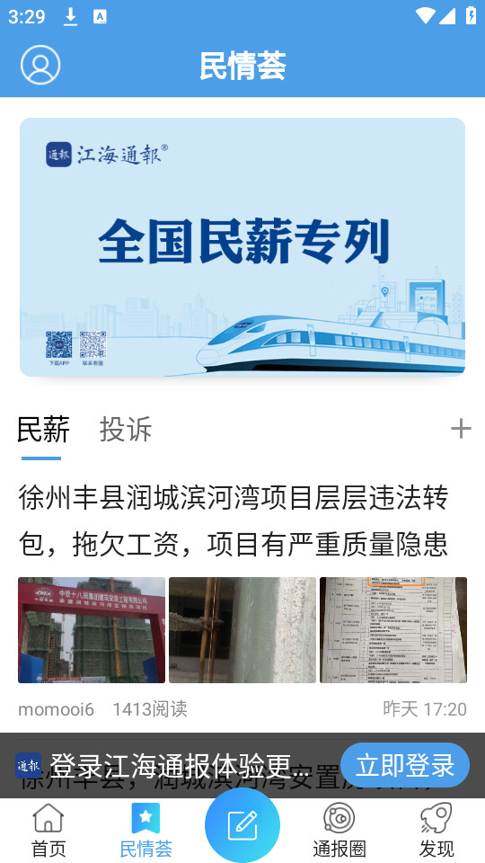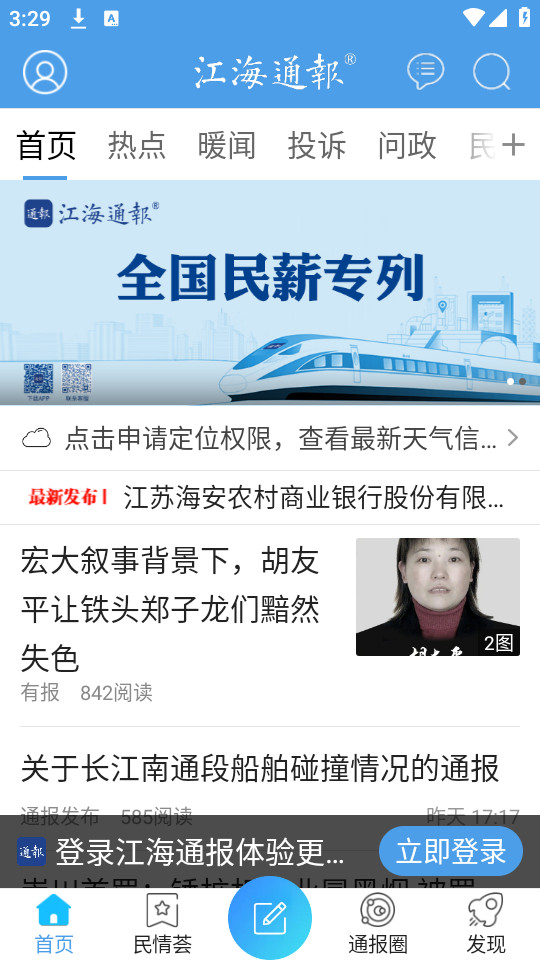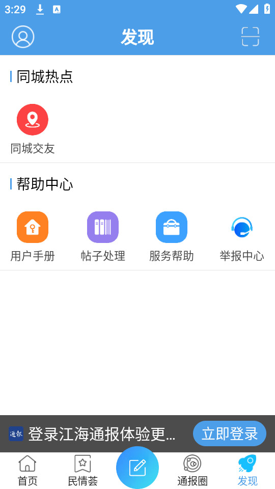 1.下载安装并打开江海通报appapp,点击【立即登录】