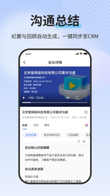纪要与回顾自动生成,一键同步至CRM