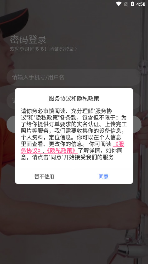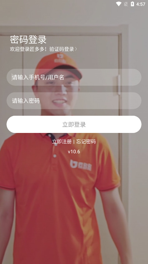 1、打开匠多应用,进入后来到登录/注册页面,选择“立即注册”。