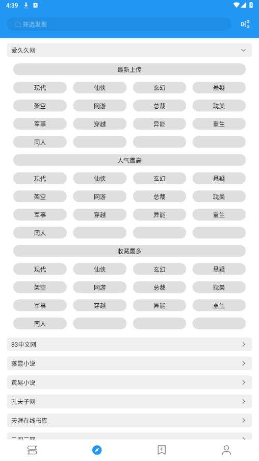 3.收集潇湘,晋江等40多家合作伙伴的大量流行书籍,以提供全面的阅读资源。