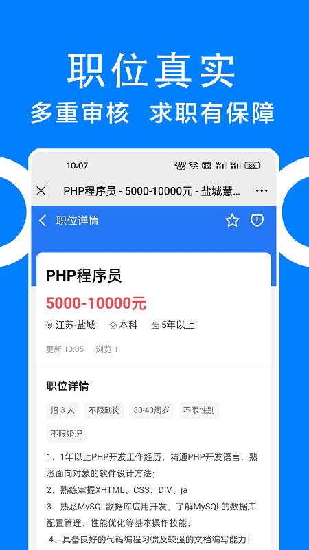 同城招聘APP专注于同城人才招聘网站,为服务同城中小企业提供招聘职位发布、简历搜索、人才推荐,同城招聘APP为同城人才求职者提供同城人才网招聘信息,为同城找工作的人免费发布个人求职信息。同城网上招人才、找工作更方便。