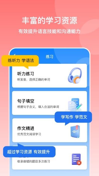 随学随练习:还可以提供随时随地的学习和练习功能,可以根据自己的时间安排,随时进行学习和练习,提高语言实力。