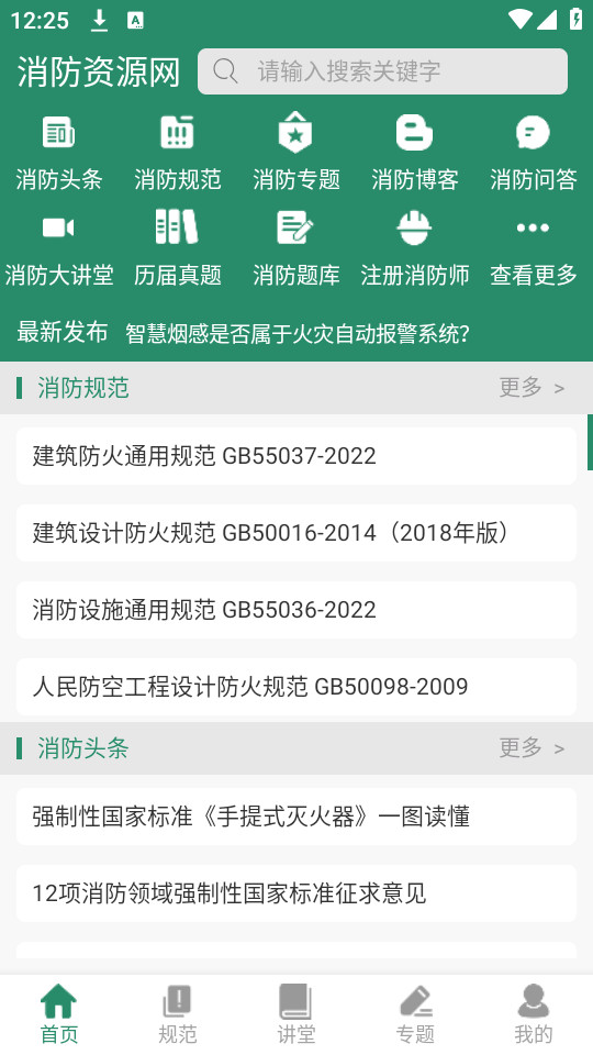 包括消防规范网、消防大讲堂、消防专题、消防问答、消防博客、消防头条等专业技术频道