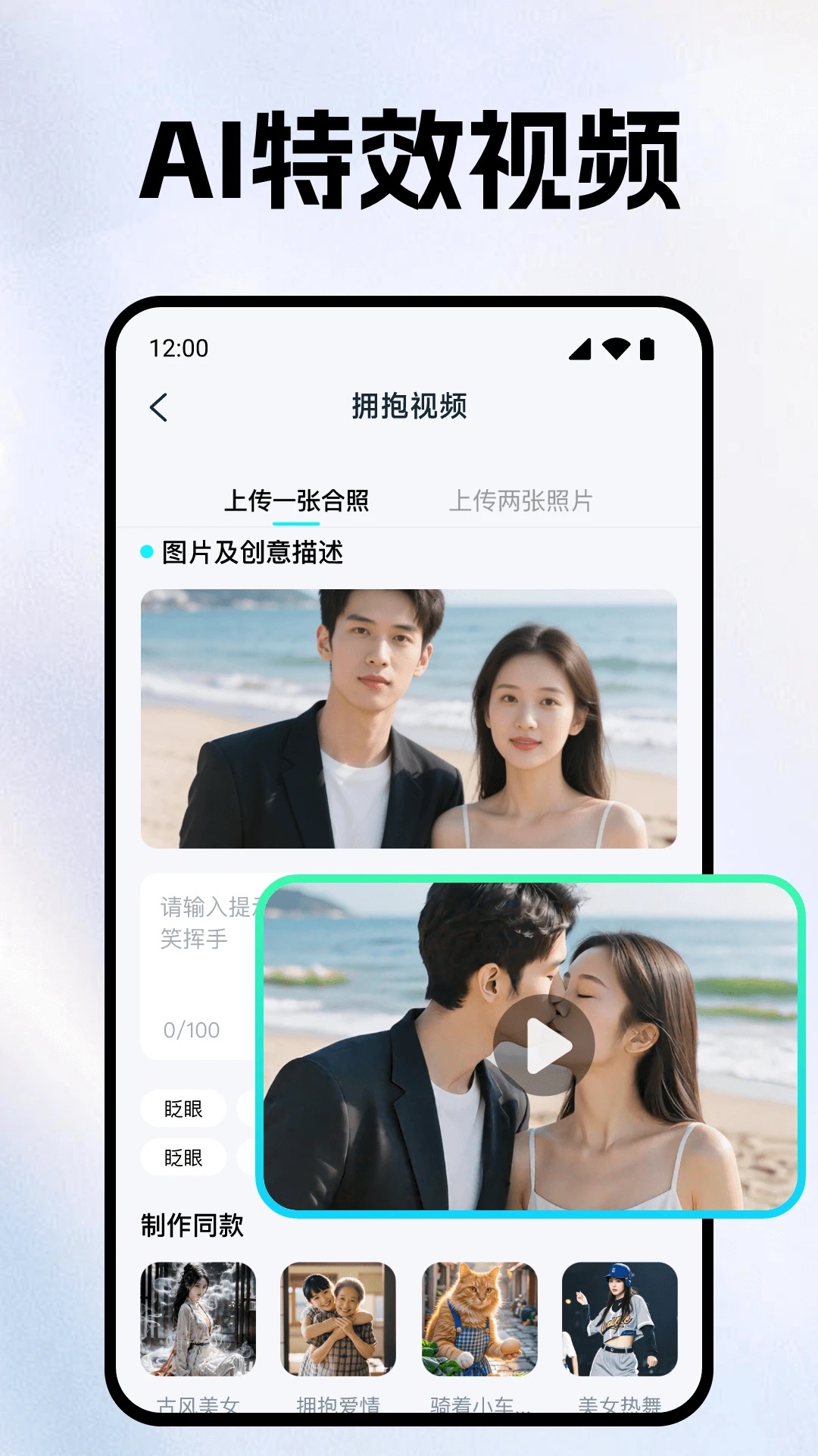 一键智能成片:输入关键词或素材,AI自动生成节奏流畅的视频。