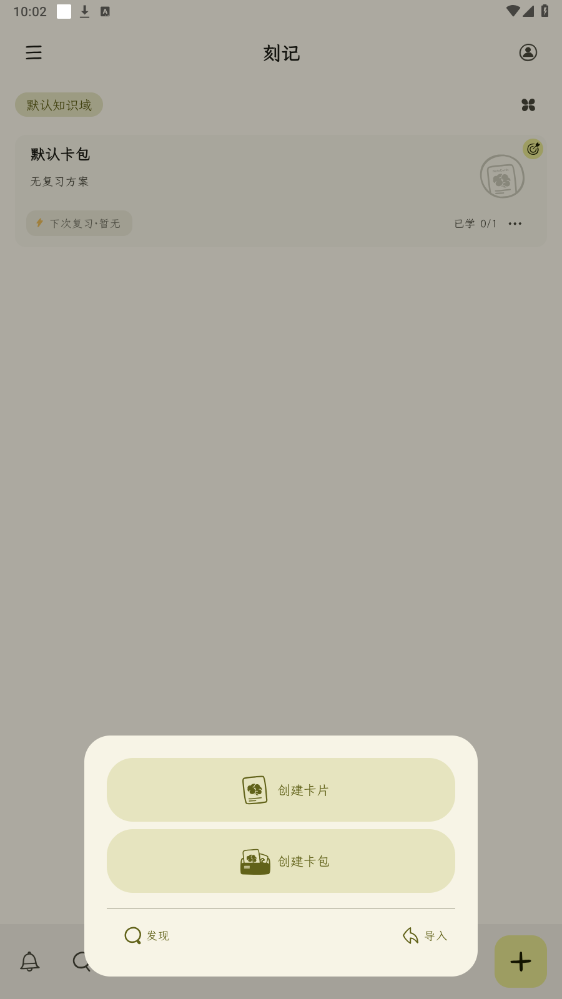 创建卡片或者卡包,还可以导入文档,这里以创建为例