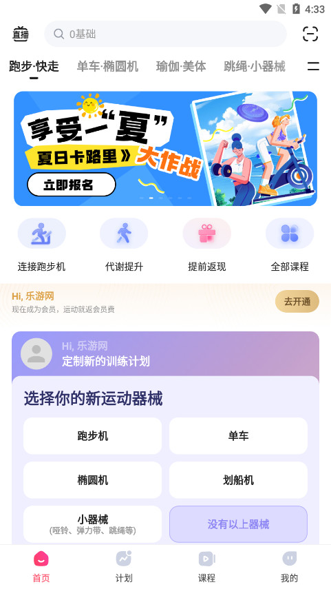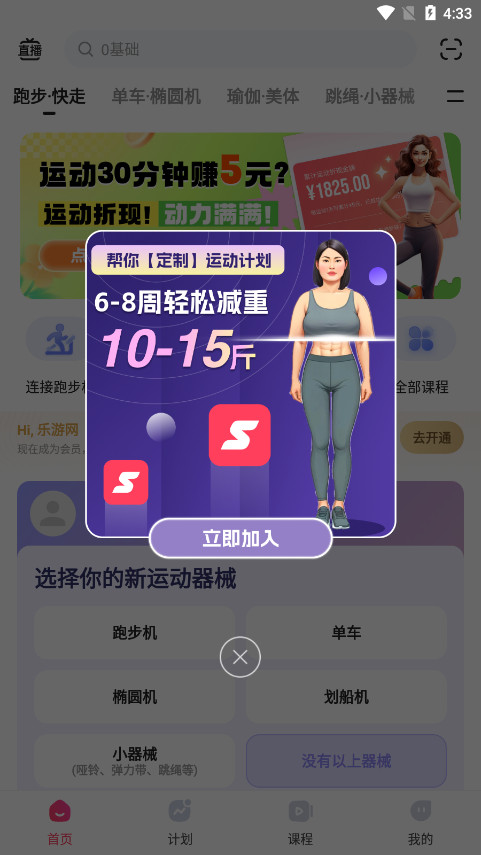【跑步课程】在跑步机上观看并参与教练带来的直播课程。