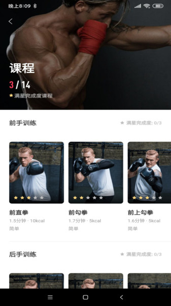3、丰富的动作课程分解,其中涵盖前直拳、前勾拳以及前上勾拳等;