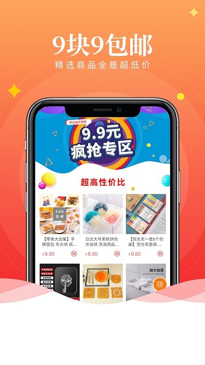 4、9.9元包邮:海量商品9.9元封顶,超高性价比,带来物超所值的幸福。