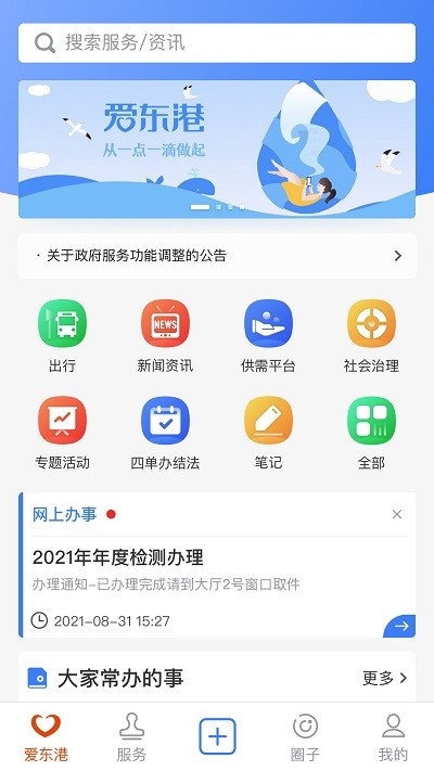 软件聚合应用包括政务服务、社会治理、东港圈、东港百科、资讯、通知公告、史志、出行、供需平台、拍一拍、任务、笔记、黄页等。