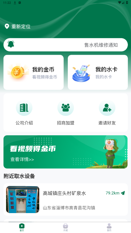 全民自由购物的服务平台,详细记录了附近所有取水设备,水质全部经过权威机构质检,是优质的纯净水,平台还提供了丰富的水设备,除此之外平台还提供了看视频得金币的功能,金币可以兑换折扣卷也可以直接兑现。打造一个开放式、互动式的创业资源服务平台,助力创业者思维通道和能力结构的快速搭建,为每一条不平凡的创业路锦上添花!