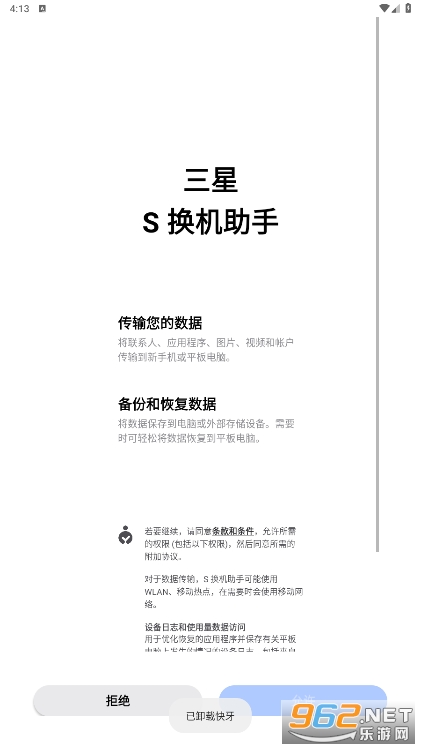 《SmartSwitch》是一款由三星公司推出的应用程序,可用于快速、安全地迁移各种数据(如联系人、照片、音乐、应用程序等)从一台设备到另一台设备。用户可以使用SmartSwitch将数据从旧手机迁移到新手机,或者从其他型号的智能手机、平板电脑、计算机等设备迁移到三星设备上。