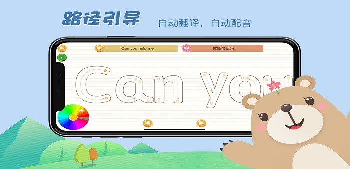 辅助孩子正确书写英文字母,单词和句子的APP,按规划好的书写路径辅助孩子进行书写练习。家长可以在家长中心自定义词汇,配合线下学习进度进行书写练习,自定义词汇自动语音阅读和自动翻译成中文。孩子完成书写会随机获得亲子卡片,可以和爸爸一起完成亲子游戏。