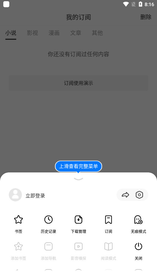 《Top浏览器》是一款极简体验与实用功能的新生代浏览器软件,专为追求清爽上网环境的用户打造。软件集成高效搜索、广告拦截、视频缓存等核心功能,支持免费浏览海量小说、追剧看片,无需忍受弹窗干扰;独创的订阅机制可自动追踪网站更新,无论是热门小说章节、影视资源还是赛事动态,一键订阅即可实时获取。