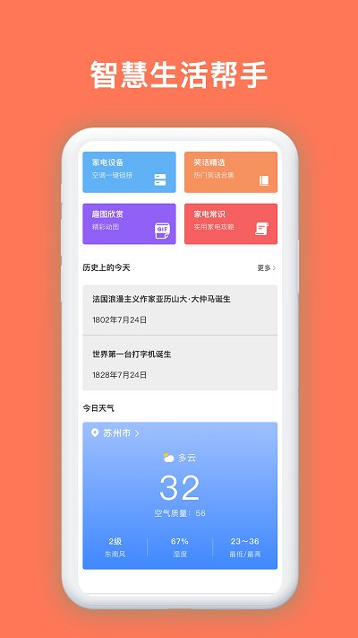 ·手机就是你的移动遥控器,可以通过红外控制家中空调、电视机、风扇等