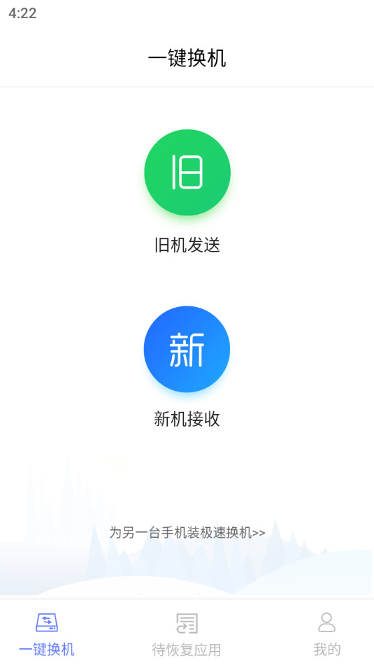 1.在两个手机上下载安装极速换机app,在旧手机上点击【旧机发送】