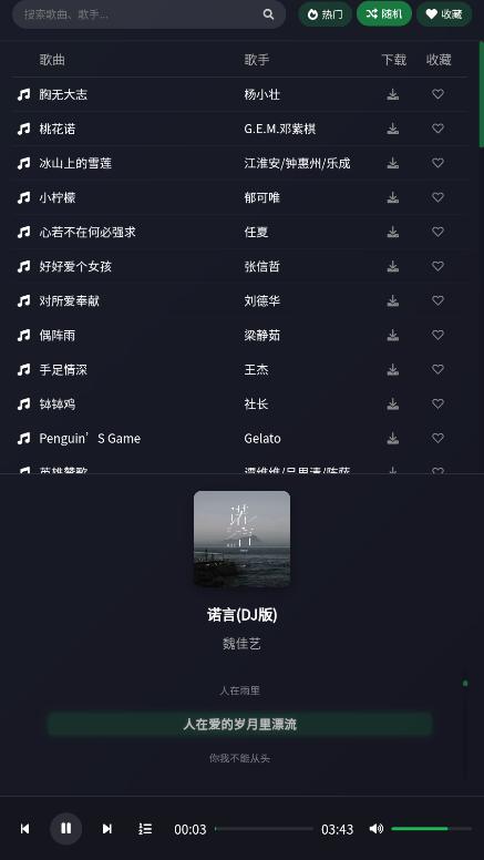 内置强大搜索引擎,支持歌名、歌手、专辑、歌词等多种关键词搜索。输入关键词瞬间,精准呈现搜索结果,还可通过筛选条件,如音乐风格、发行年代、语种等,快速缩小范围,定位心仪歌曲。搜索历史与热门搜索推荐功能,让再次查找音乐更加便捷。