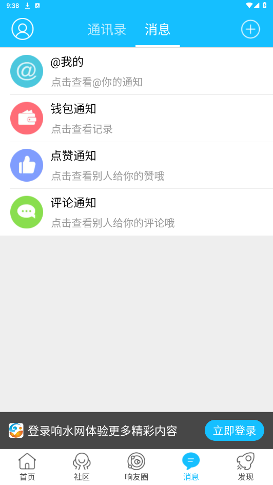 打开响水网app,点击右下方+