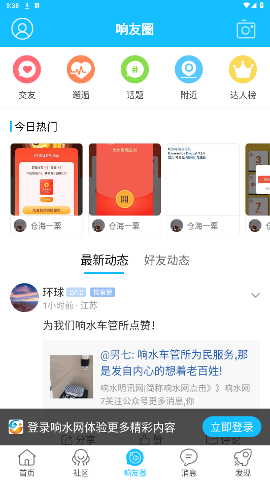响水网用起来确实方便,尤其是找本地信息特别快,租房、找工作比翻朋友圈靠谱多了。论坛氛围挺活跃,偶尔还能刷到老乡分享的实用攻略。不过界面设计有点老旧,操作偶尔卡顿,希望后续能优化流畅度。另外,部分小众板块更新慢,比如二手交易信息不多,但整体来说,在响水生活有这个APP会省心很多!