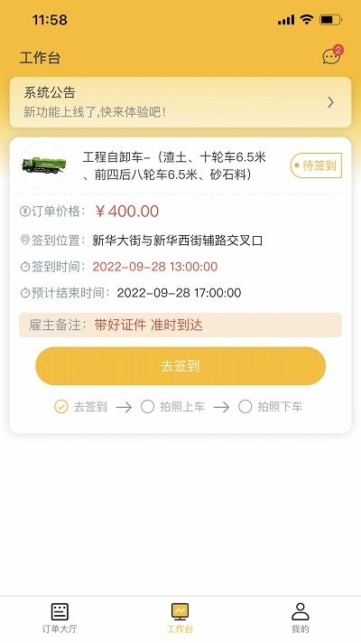 2、系统会根据用户的位置进行附近订单的推送,方便更好的接单。