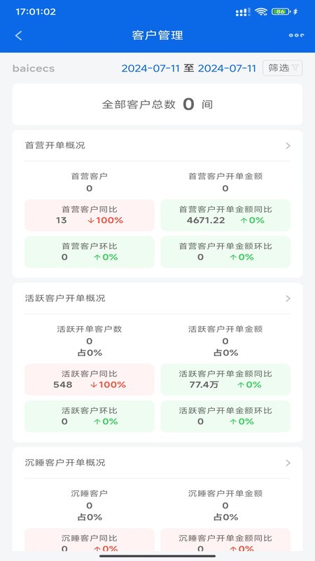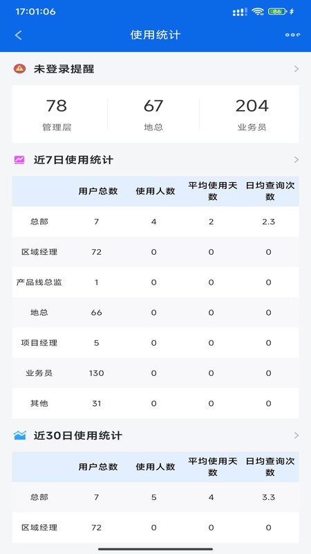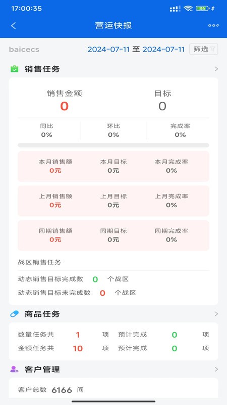 佰策掌握app最新版软件可以查看每天的开单情况,支持查看整体以及单人的销售数据,包括销售任务、金额、目标完成进度等,还能按照区域来查看详细的数据统计和排行情况。