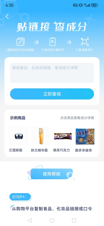通过扫描产品上的条形码,快速获取该产品的成分信息,无需手动输入,省心又省力。