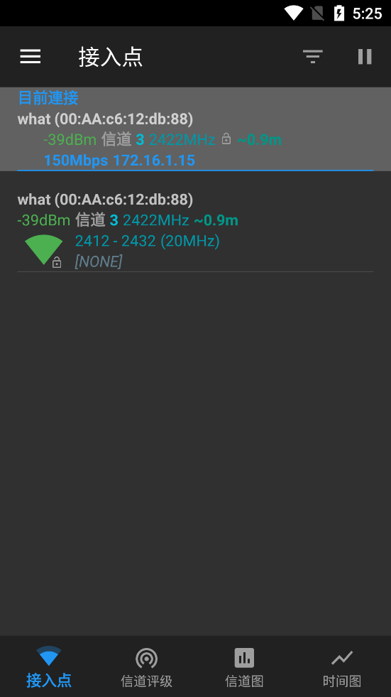 WiFiAnalyzer能够快速识别并列出附近的WiFi接入点,包括那些隐藏的网络。通过直观的界面和详尽的信息展示,用户可以清晰地看到每个接入点的信号强度、频段、信道使用情况以及安全性等关键信息。这种全面的检测,为用户提供了深入了解当前网络环境的基础。