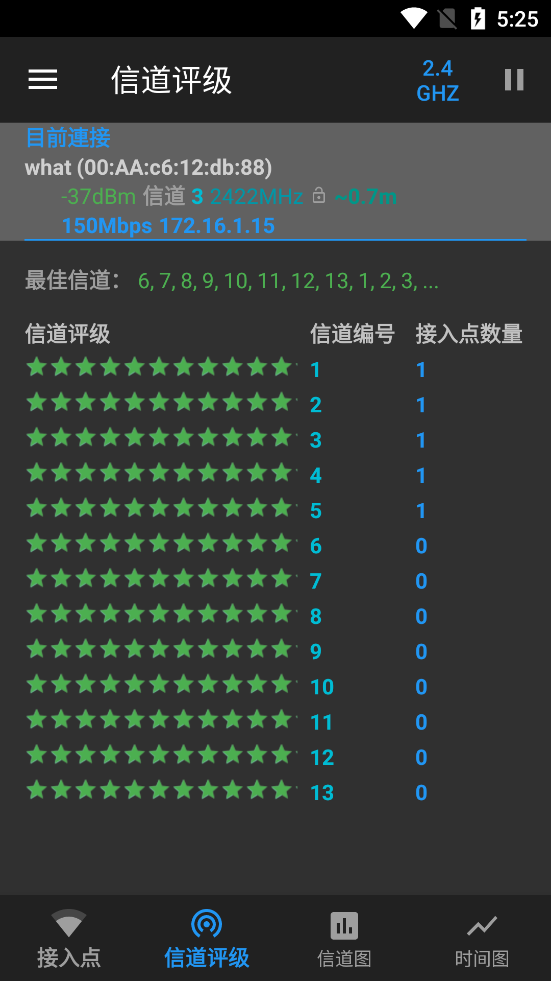 软件能直接对各个信道做出等级评定,告诉你哪个信道在当前最合适。