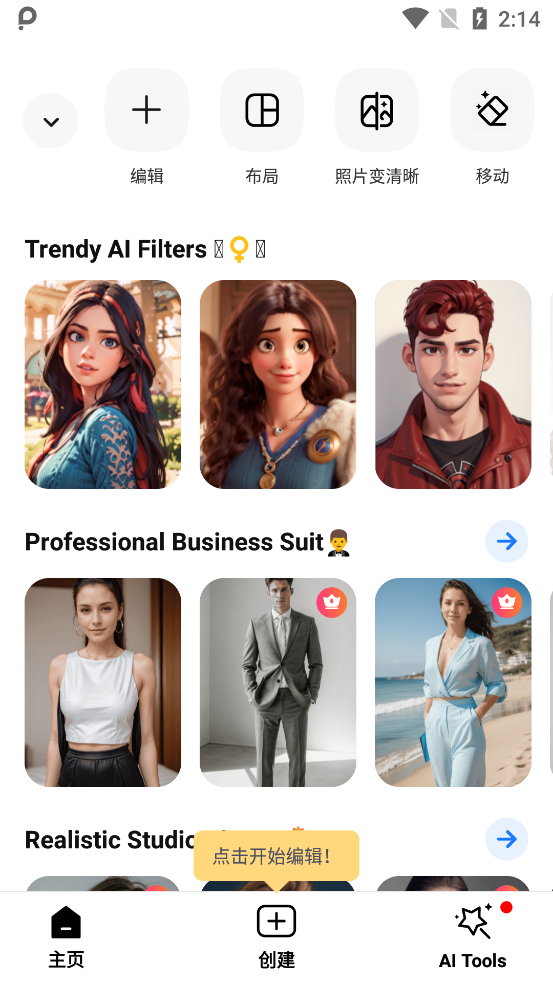 选择要编辑的图片后可以看到各种编辑功能,比如AI滤镜