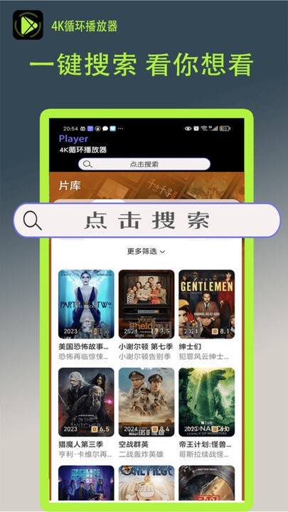4K循环播放器app是一个电视剧播放app,里面有大量的电影电视资源,软件设计简单好操作,搜索功能只需要搜索关键字就能找到想看的,还支持多种音频的播放,用户的反馈团队都会受到整改,喜欢的快来下载使用!
