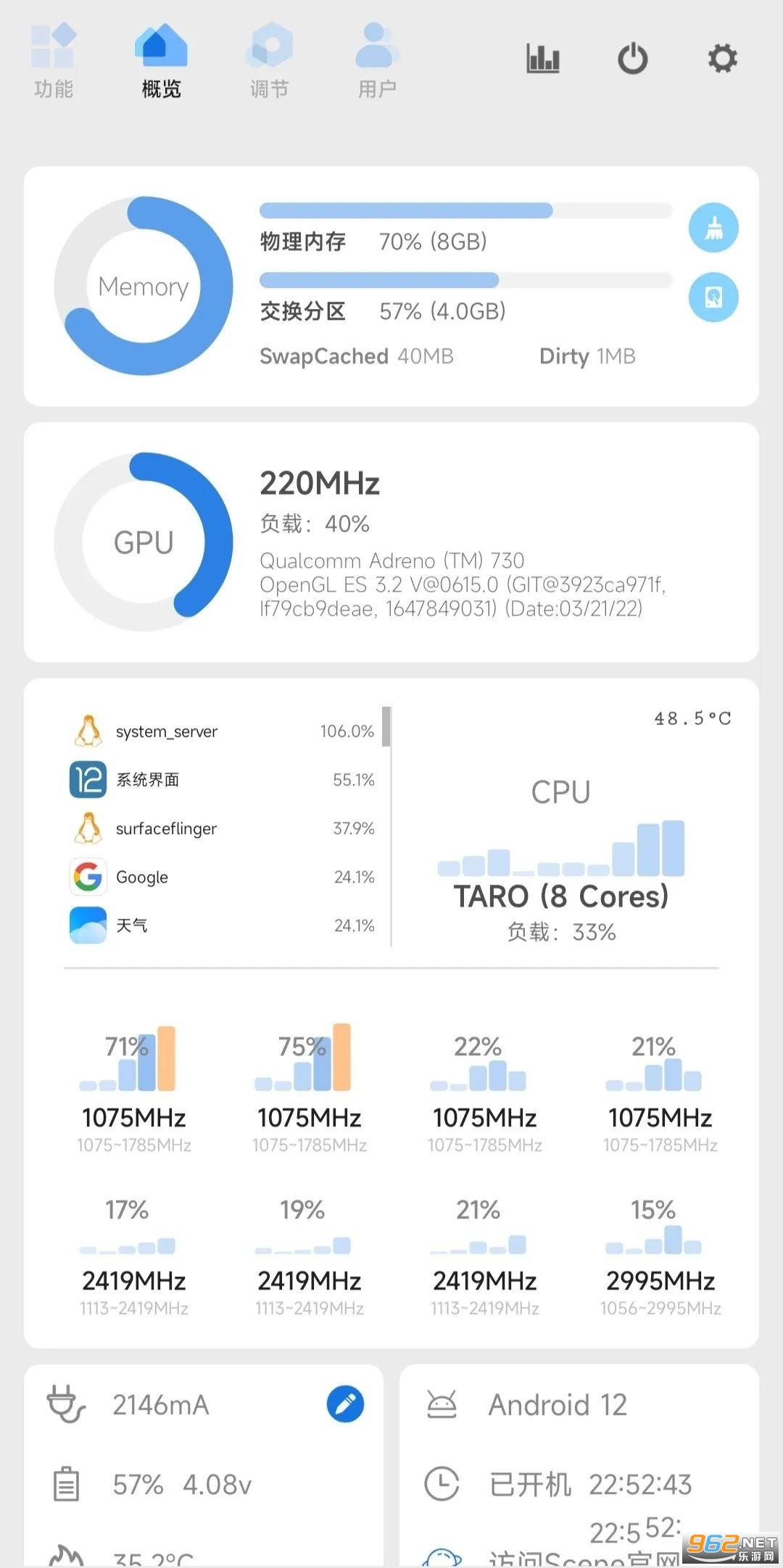 1、能够对手机硬件进行管理检测,便于用户随时了解硬件的健康状态,做出及时处理,维护手机性能。