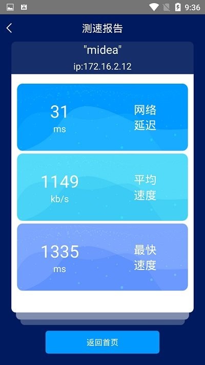 3、查看生成的测速报告,其中会清晰列出下载速度、上传速度及网络延迟等关键数据。
