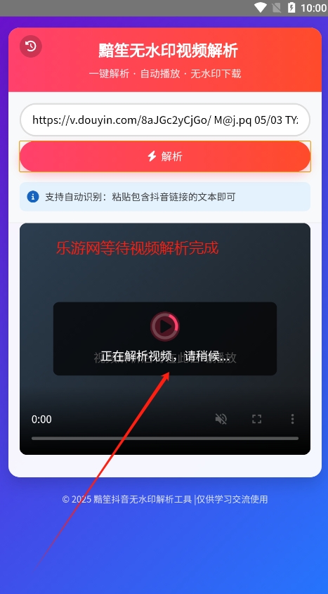 3、等待视频解析过程加载,中途不要随意退出。