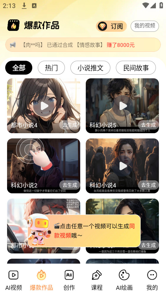 1、强大的AI引擎可以根据用户提供的关键词、情节、角色设定等信息,自动生成故事大纲、章节或完整的短篇故事。