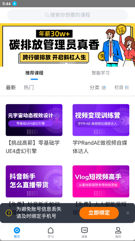 自动统计最近报名学习的课程,让用户在有需求的时候能够灵活学习课程,方便查找课程;