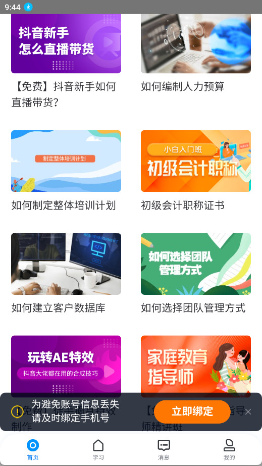 3.点击学习,可以按照计划和课程进行学习,并且声称学习报告等