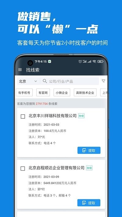 支持一键提取线索,找到满意线索即可在这里一键提取线索为己所有