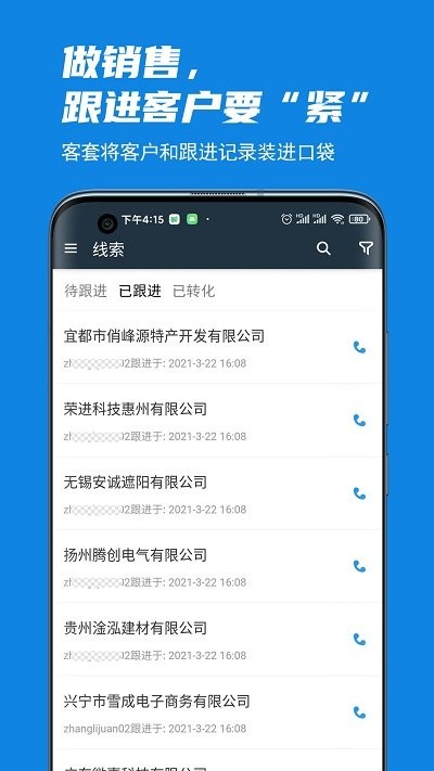 一键快捷通话,不需要输入号码即可自动拨号联系潜在客户