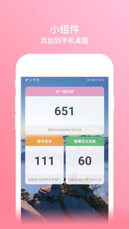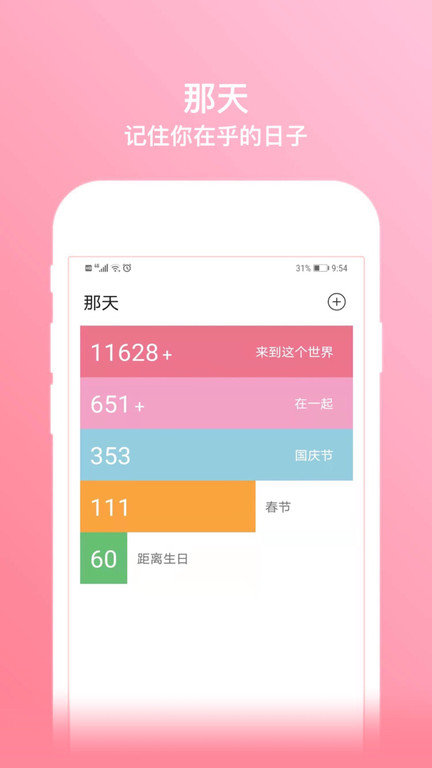 那天app是一款手机倒数日软件,能够帮你记录生命中的每一天,让你的生活更加多姿多彩,而且还能算出和你爱的人在一起的时间,非常方便,有需要的朋友赶紧来这里下载使用吧!!!