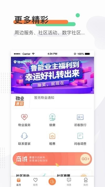 为广大业主提供多样化的功能选择,使用这款软件查看最新的物业通告信息,为小区业主提供手机开门、物业求助、线上缴费等功能,还提供全面系统化的安保和公共维修服务,整个页面非常的简单,使用起来也非常的方便!