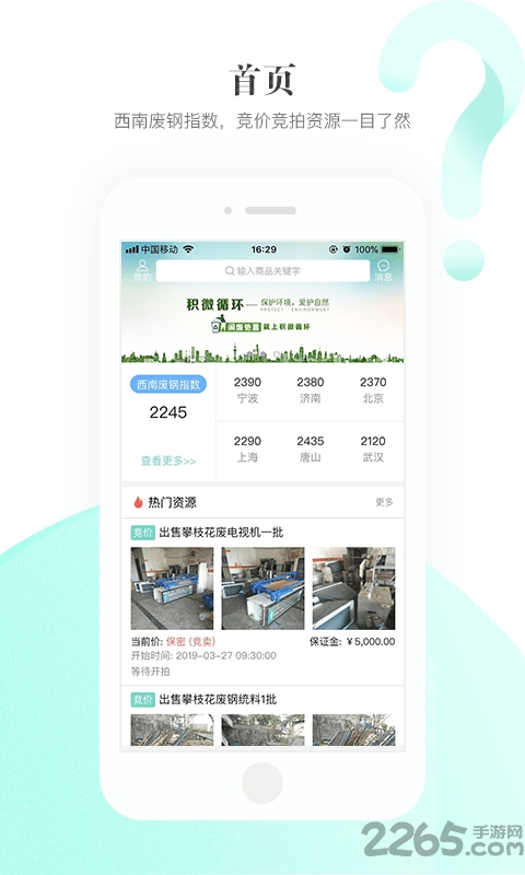闲废资源处置一站式服务平台,力求为客户提供闲废资源处置方案,让你的闲废资源价值大化。且支持商品在线交易,通过招标竞价竞拍的方式让交易变得更容易。以优惠价格购入,积微循环app全方位提供运输服务哦。