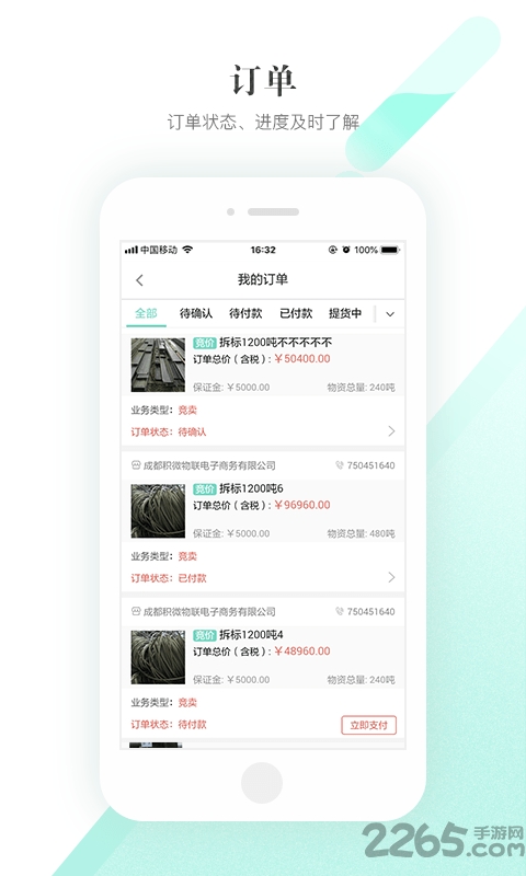 支持pc和app,交易过程任何一个环节可以实时查看。在积微循环,我们让二手闲废资源交易:卖的省心,买的放心