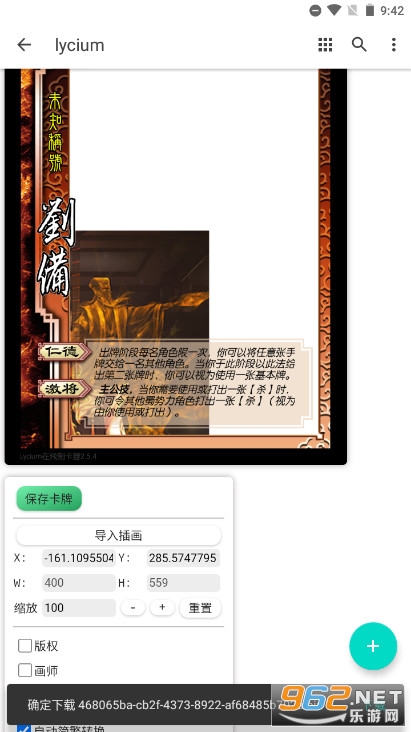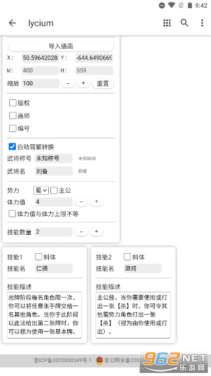 《lycium》是一款专为三国杀爱好者打造的轻量化DIY卡牌创作工具,无需下载安装即可通过网页端快速生成个性化武将卡牌。玩家只需准备武将图片与技能文案,就能自由定制势力、体力值、称号等元素,甚至通过繁体字输入与双技能设置还原经典武将风格,其可视化编辑界面支持图片缩放旋转,让零基础玩家也能轻松产出媲美官方质感的卡牌素材,为同人创作、面杀拓展提供了灵活的创意空间。