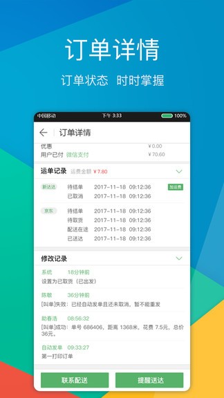 比邻鲜接入了达达、闪送等同城配送平台,需要3公里或者同城配送?在比邻鲜上直接呼叫配送,跟踪配送单状态,自动结算!
